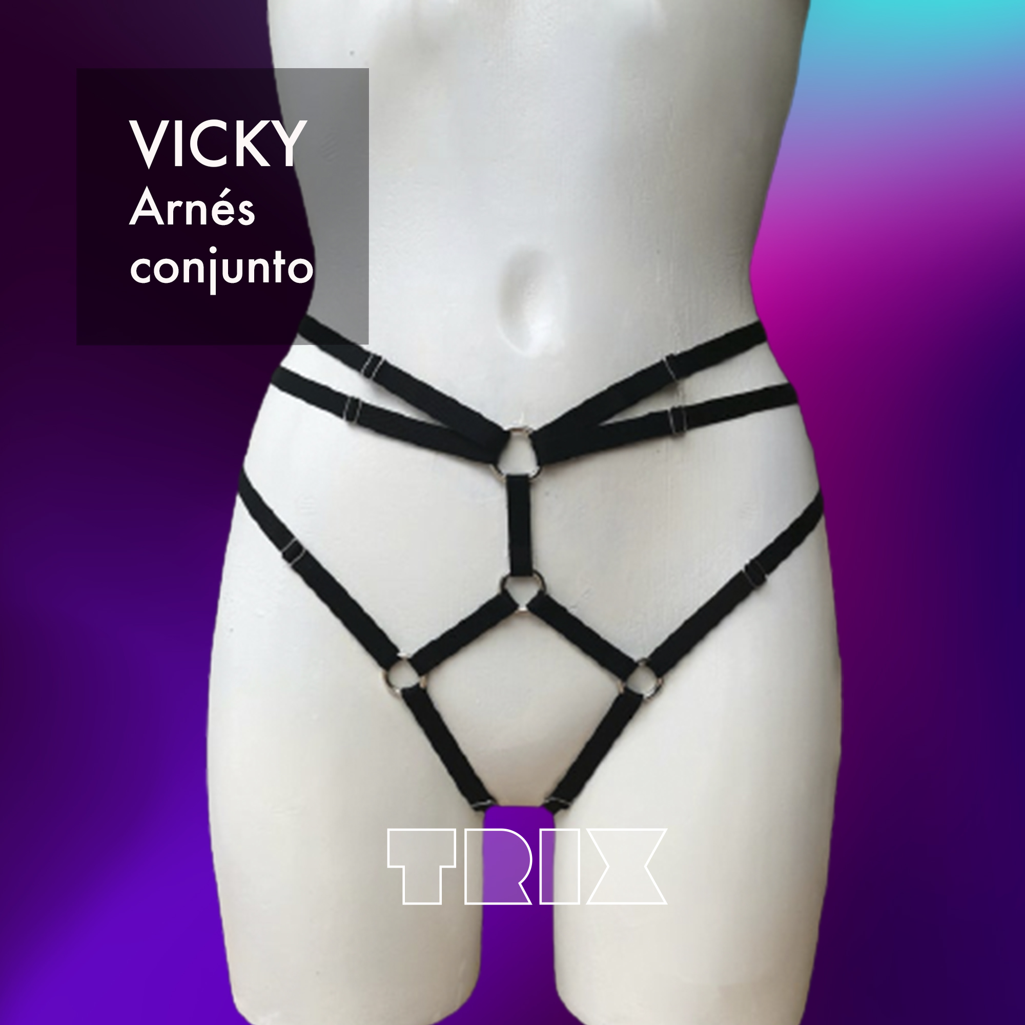 “Vicky”. Arnés dos piezas realizado en elástico rasado premium de 10mm.